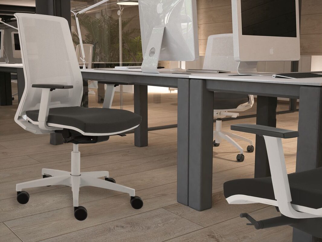 Je delovni stol, ki ponuja udobje, kvaliteto in eleganco. Mrežast naslon ergonomsko oblikovan in z ledveno oporo zagotavlja maksimalen oprijem med sedenjem, hkrati pa omogoča zračnost hrbtišča. Synhro mehanizem omogoča neodvisno nastavljanje naklona sedeža in naslonjala, ima opcijo prostega guganja in vgraditev drsne plošče.