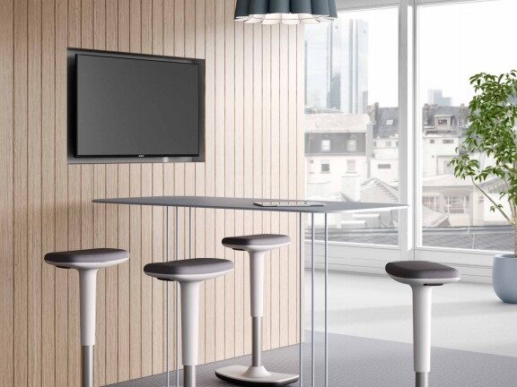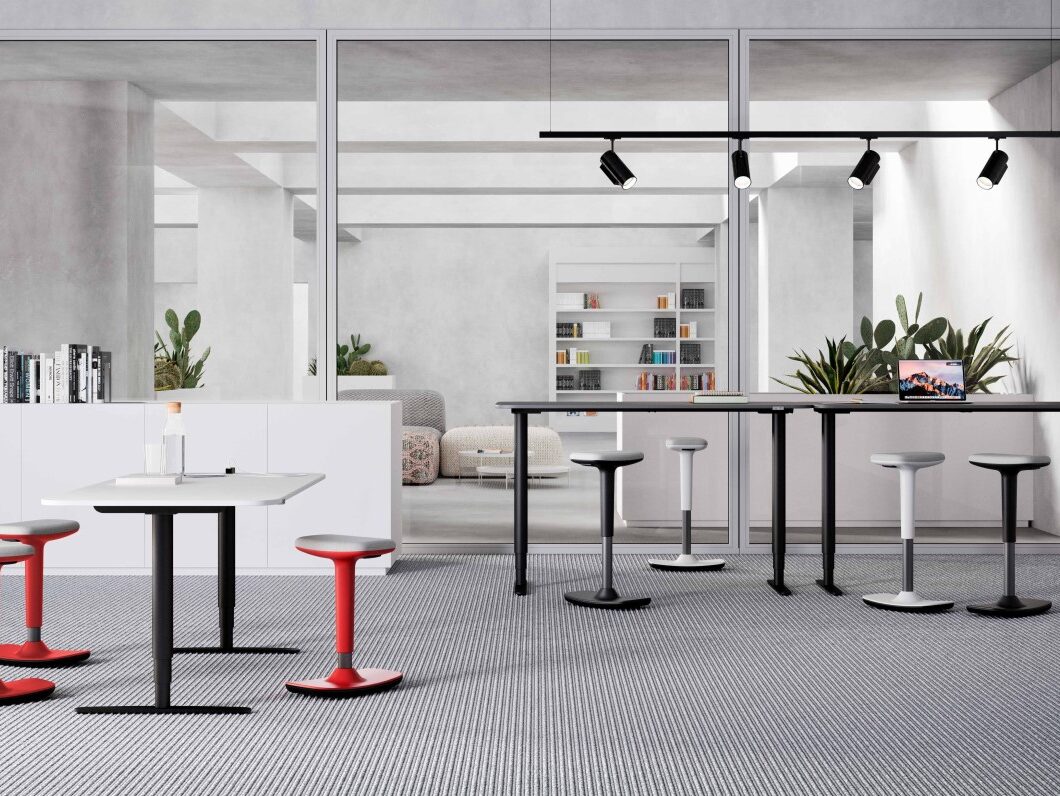 OLI je večnamenski stol, ki zaradi svoje posebne oblike, ter brizgane pene zagotavlja udobno sedenje. Primeren je tako za klasične, kot visoke mize, saj je njegov višinski razpon od 51 do 75 cm. Sedežni del lahko se lahko obrača za 360 stopinj, posebnost pa se skriva v podnožju, saj se stol lahko nagiba za 20 stopinj, kar omogoča razgibano delo tudi iz sedečega položaja, spodnji del stola je prevlečen z nedrsečo gumo.